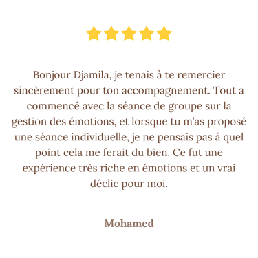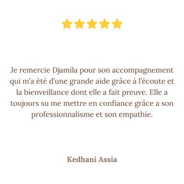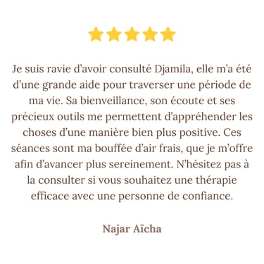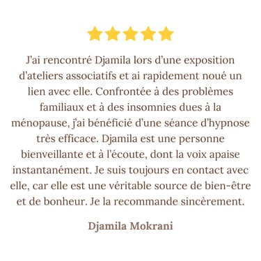 Je suis Djamila Slaimi. Depuis toujours, l'humain m'intrigue, me touche, me passionne. Comprendre les émotions, les comportements, les liens invisibles entre les personnes… c'est ce qui m'anime profondément, bien au-delà des mots.