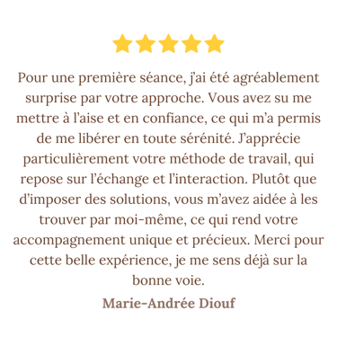 Mon approche est intégrative : elle s'adapte à toi, à ce que tu vis, à ce que tu sens.